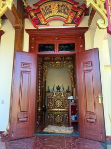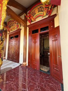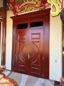 Từng cánh cửa không chỉ mang vẻ đẹp thẩm mỹ, mà còn thể hiện sự trang nghiêm, tôn kính – đúng với tinh thần của những không gian linh thiêng.